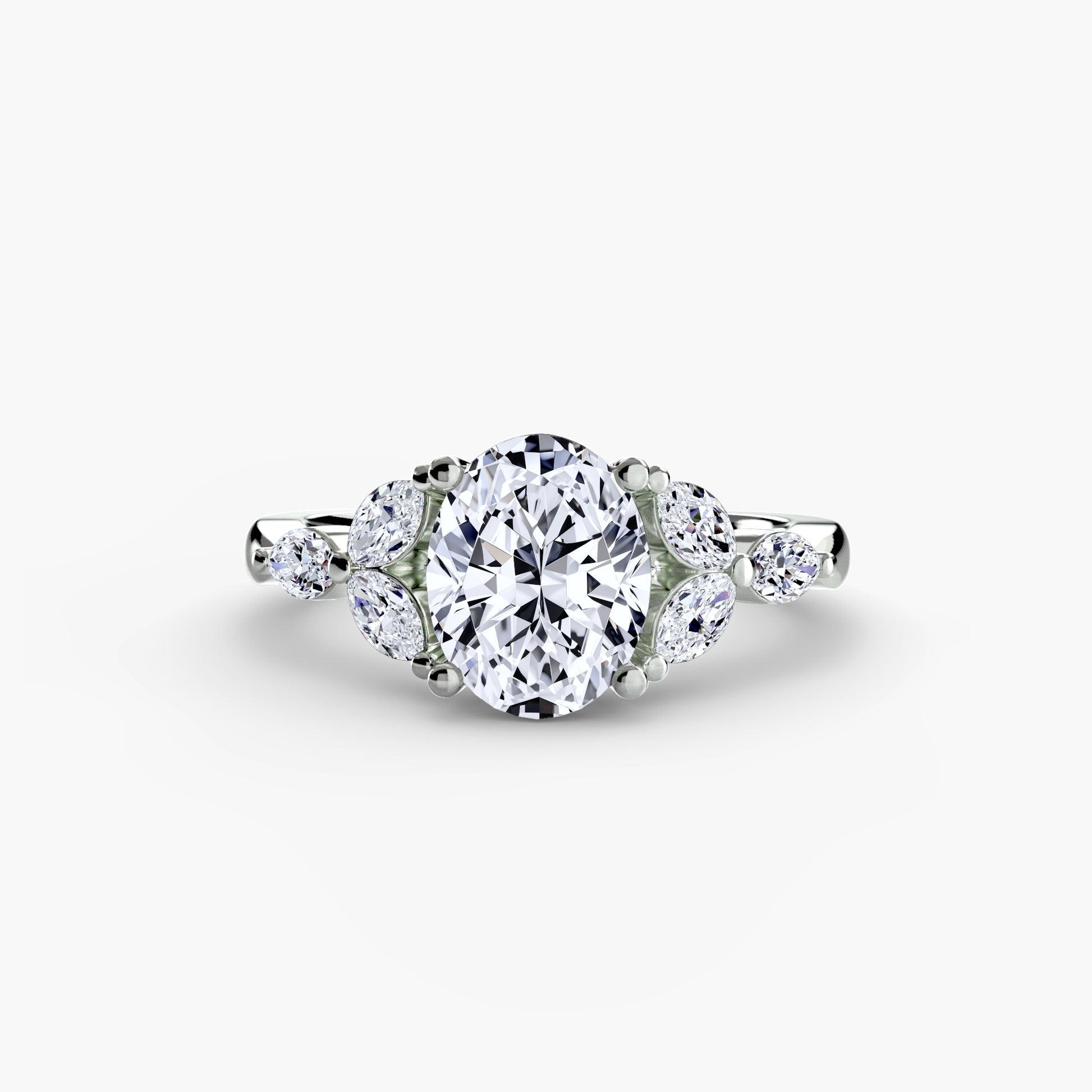 Designed with side stones that gracefully complement the center stone, this ring strikes a balance between classic elegance and added brilliance. Perfect for those who want a refined look with just the right amount of sparkle.